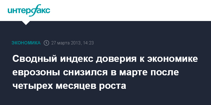 Сводный индекс доверия к экономике еврозоны снизился в марте после четырех месяцев роста