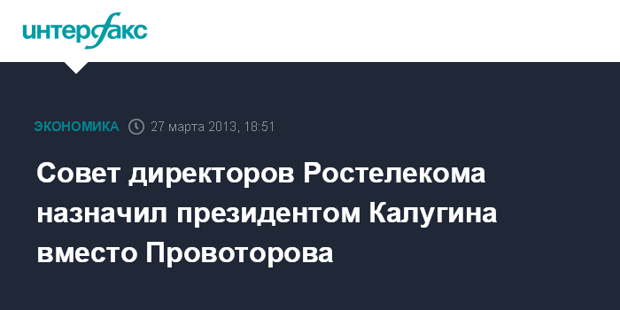 Совет директоров Ростелекома назначил президентом Калугина вместо Провоторова