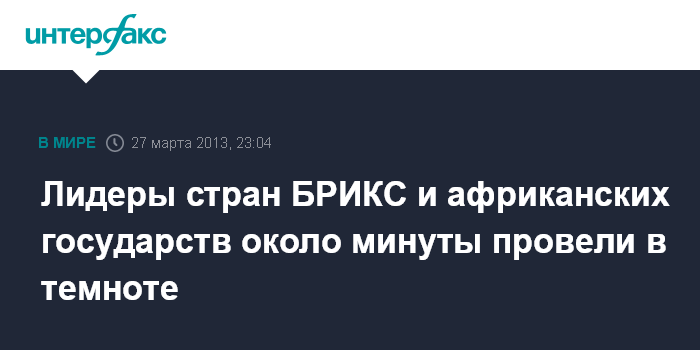 Дурбан. 27 марта. INTERFAX.RU - Организационные неудачи преследуют хозяев саммита БРИКС - под конец дня проведения встреч на высшем уровне в отеле, где проводились переговоры, стал гаснуть свет.