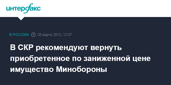 В СКР рекомендуют вернуть приобретенное по заниженной цене имущество Минобороны