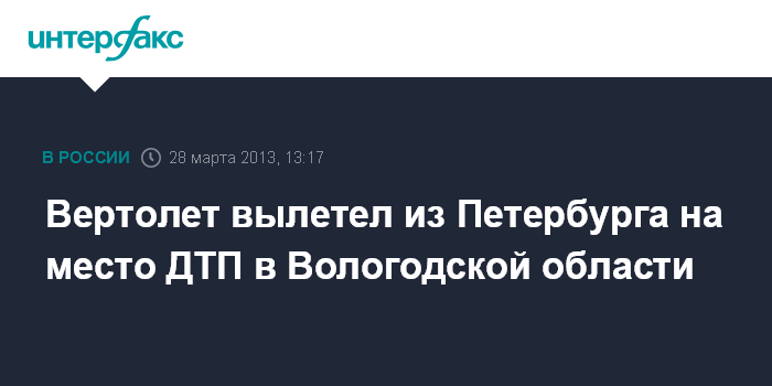 Вертолет вылетел из Петербурга на место ДТП в Вологодской области