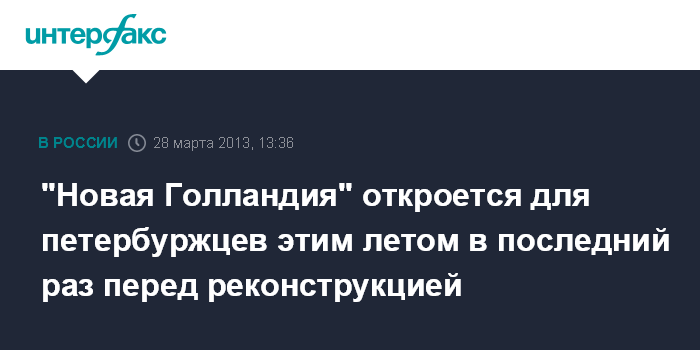 Санкт-Петербург. 28 марта. INTERFAX.RU - Остров Новая Голландия вновь откроется для петербуржцев и гостей северной столицы на летний период, сообщила пресс-служба фонда "Айрис Новая Голландия" в четверг.