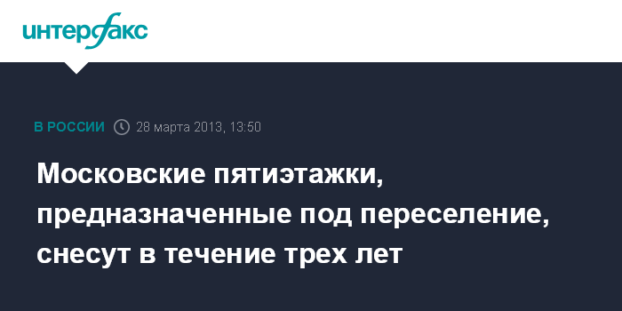 Московские пятиэтажки, предназначенные под переселение, снесут в течение трех лет