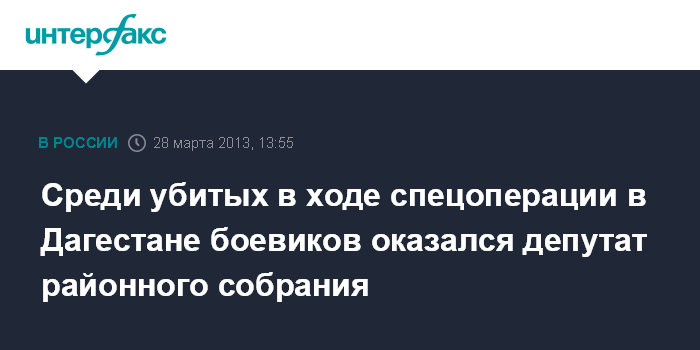 Махачкала. 28 марта. INTERFAX.RU - Одним из пяти убитых в спецоперации в махачкалинском поселке Семендер боевиков был депутат районного собрания Унцукульского района Дагестана Магомедхабиб Магомедалиев, сообщили "Интерфаксу" в республиканском следственном управлении.