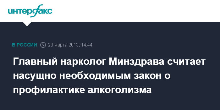 Главный нарколог Минздрава считает насущно необходимым закон о профилактике алкоголизма