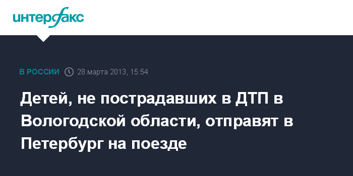 Детей, не пострадавших в ДТП в Вологодской области, отправят в Петербург на поезде