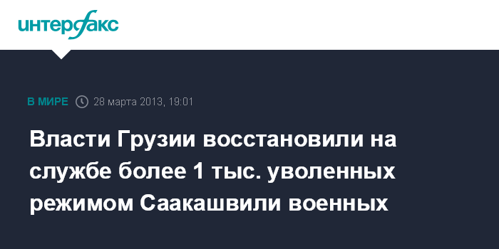 Тбилиси. 28 марта. INTERFAX.RU - Более 1 тыс. уволенных военнослужащих вернулись на службу, сообщили в Минобороны Грузии.