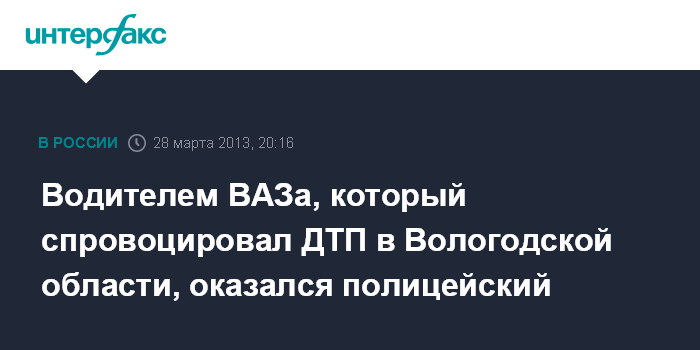 Вологда. 28 марта. INTERFAX.RU - В ходе расследования крупной аварии, произошедшей в четверг под Череповцом, установлено, что водителем ВАЗ-2115, машина которого выехала "на встречку", являлся сотрудник полиции 1969 г.р, говорится в сообщении регионального МВД.