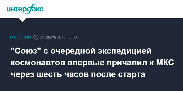 Байконур. 29 марта. ИНТЕРФАКС-АВН - Российский космический корабль "Союз ТМА-08М" с тремя космонавтами на борту причалил к многофункциональному модулю "Поиск" Международной космической станции (МКС) после шестичасового полета по "короткой схеме".