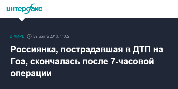 Россиянка, пострадавшая в ДТП на Гоа, скончалась после 7-часовой операции