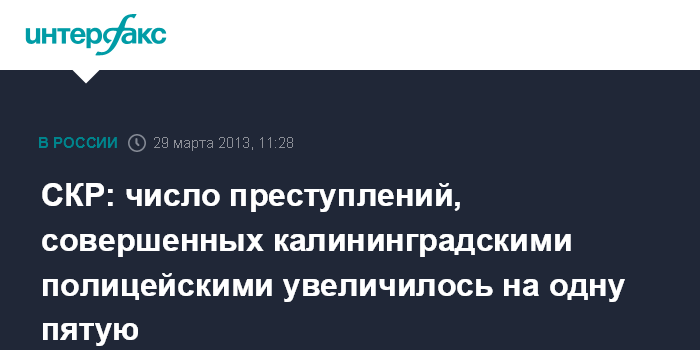 По данным СКР, "анализ преступлений, совершенных сотрудниками органов внутренних дел в Калининградской области, показывает, что в сравнении с 2011 в минувшем году количество таких преступлений увеличилось на 20%".