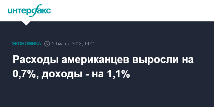 Расходы и доходы американцев в феврале выросли больше прогнозов. Аналитики, опрошенные агентством Bloomberg, ожидали рост первого показателя на 0,6%, второго - на 0,8%.