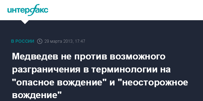 Медведев не против возможного разграничения в терминологии на "опасное вождение" и "неосторожное вождение"