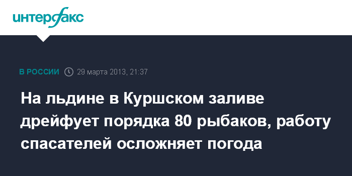По предварительным данным, на льдине находится около 80 рыбаков. Работу спасателей затрудняют сложные погодные условия - в Калининграде идет снег.