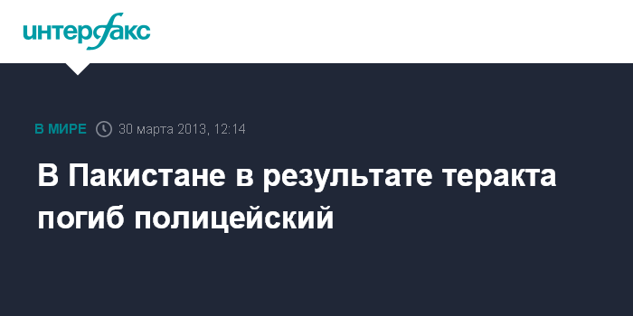В Пакистане в результате теракта погиб полицейский