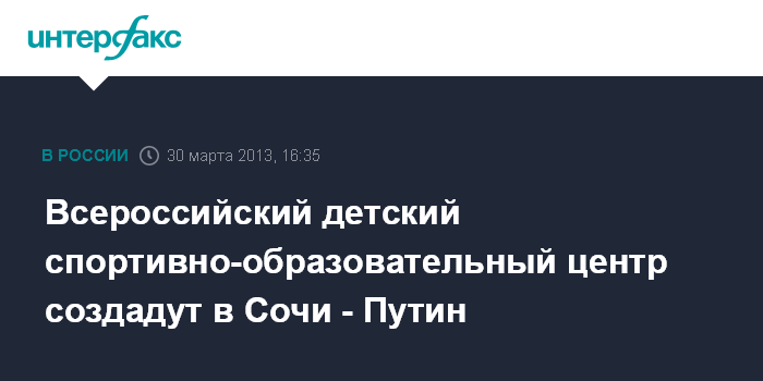Сочи. 30 марта. INTERFAX.RU - В Сочи после Олимпиады 2014 года появится Всероссийский детский спортивно-образовательный центр, заявил президент РФ Владимир Путин.