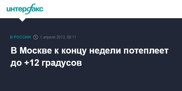 Москва. 1 апреля. INTERFAX.RU - Весна на грядущей неделе с опозданием, но вступит в свои права: к пятнице в столице потеплеет до +10, а местами до + 12 градусов, сообщили "Интерфаксу" в Гидрометеобюро Москвы и Московской области в понедельник.