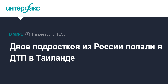 Бангкок. 1 апреля. INTERFAX.RU - Двое российских подростков госпитализированы в больницу острова Пхукет в Таиланде в результате ДТП, сообщает в воскресенье местная газета "Пхукет ньюс".