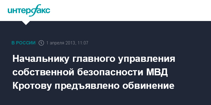 Начальнику главного управления собственной безопасности МВД Кротову предъявлено обвинение