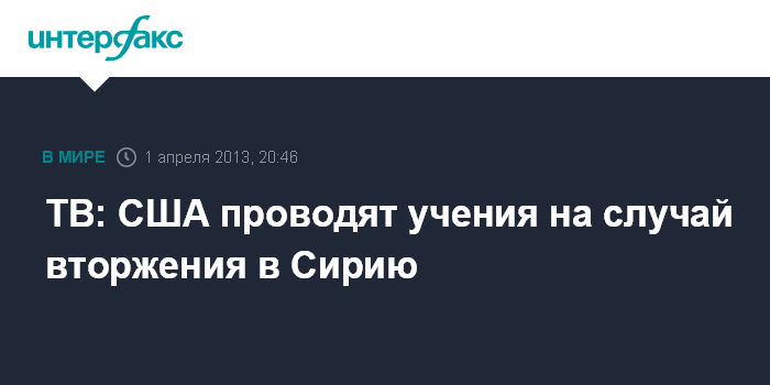 Дубай. 1 апреля. INTERFAX.RU - Военные подразделения США участвуют в маневрах на случай возможного вмешательства в сирийский конфликт, передал в понедельник межарабский телеканал "Аль-Джазира".