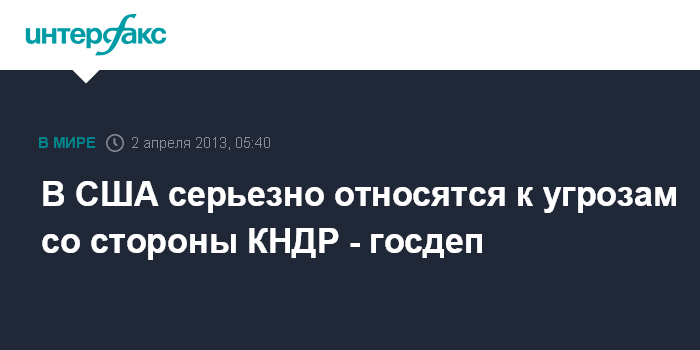 Вашингтон. 2 апреля. ИНТЕРФАКС - В США серьезно относятся к угрозам, а также предпринимаемым Северной Кореей действиям, заявила официальный представитель госдепартамента США Виктория Нуланд на брифинге.