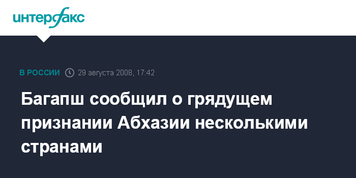 "Признание Абхазии некоторыми другими странами может произойти через три - четыре дня", - заявил глава республики, но называть эти государства не стал.