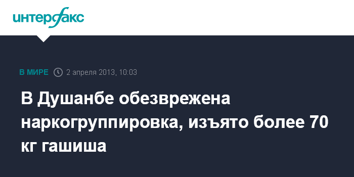 Душанбе. 2 апреля. INTERFAX.RU - В Душанбе сотрудники милиции задержали автомобиль, перевозивший 73 килограмма гашиша, задержав при этом двух подозреваемых в наркотраффике афганских наркотиков в Россию и другие страны СНГ, сообщила во вторник пресс-служба МВД республики.