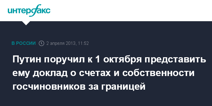 Путин поручил к 1 октября представить ему доклад о счетах и собственности госчиновников за границей