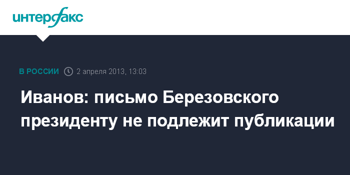 Иванов: письмо Березовского президенту не подлежит публикации