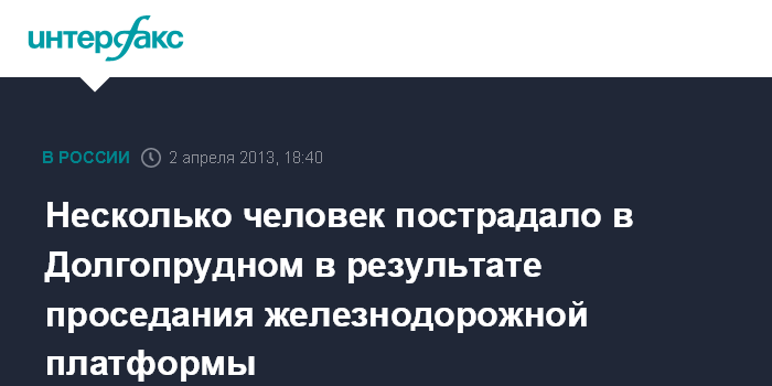 Москва. 2 апреля. INTERFAX.RU - Несколько человек пострадали в результате проседания плиты на железнодорожной платформе в Подмосковье, сообщили "Интерфаксу" в службе корпоративных коммуникаций Московской железной дороги.