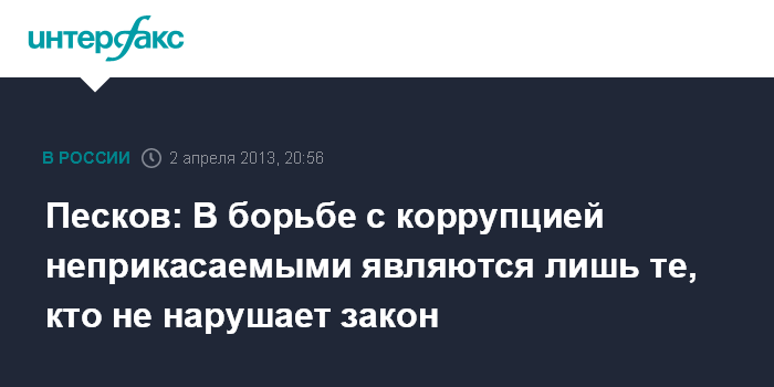 Песков: В борьбе с коррупцией неприкасаемыми являются лишь те, кто не нарушает закон