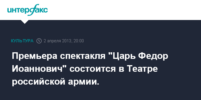 Москва. 2 апреля. INTERFAX.RU - Премьера спектакля в постановке народного артиста России Бориса Мороза по пьесе А.К. Толстого "Царь Федор Иоаннович" состоится 3 апреля в Центральном академическом театре Российской армии в Москве.