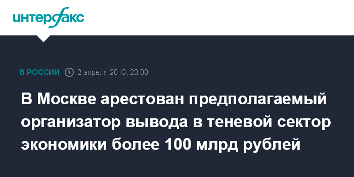 В Москве арестован предполагаемый организатор вывода в теневой сектор экономики более 100 млрд рублей