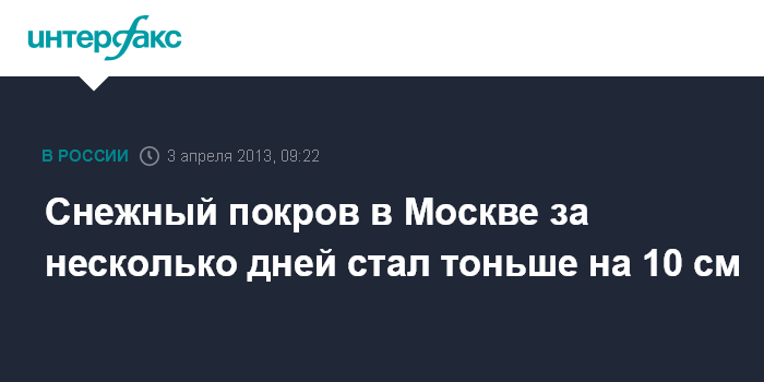 Москва. 3 апреля. INTERFAX.RU - Снег в столице тает со скоростью несколько сантиметров в сутки, процесс идет по нарастающей, сообщили "Интерфаксу" в Гидрометеобюро Москвы и Московской области в среду.
