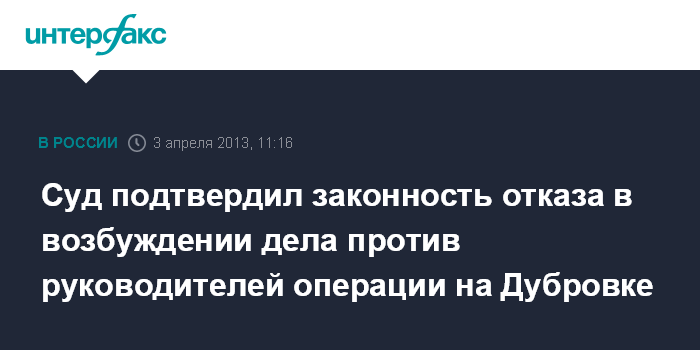 Суд подтвердил законность отказа в возбуждении дела против руководителей операции на Дубровке