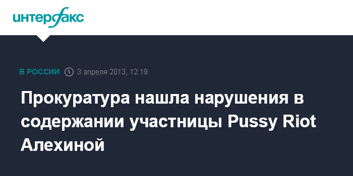 Москва. 3 апреля. INTERFAX.RU - Прокуратура считает, что необходим перевод осужденной участницы панк-группы Pussy Riot Марии Алехиной в другую колонию.