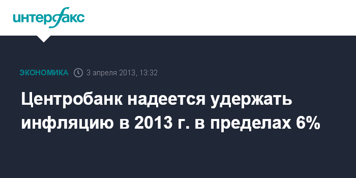 Центробанк надеется удержать инфляцию в 2013 г. в пределах 6%