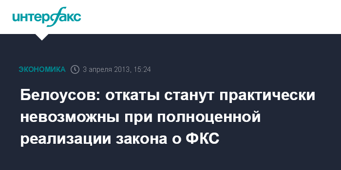 "Если все удастся исполнить, то откаты станут практически невозможны", - сказал Белоусов.