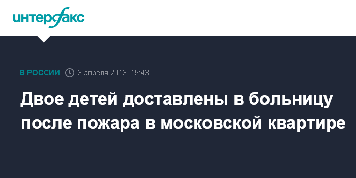 Москва. 3 апреля. INTERFAX.RU - Два ребенка пострадали в результате пожара в квартире на севере Москвы, сообщил "Интерфаксу" источник в правоохранительных органах.