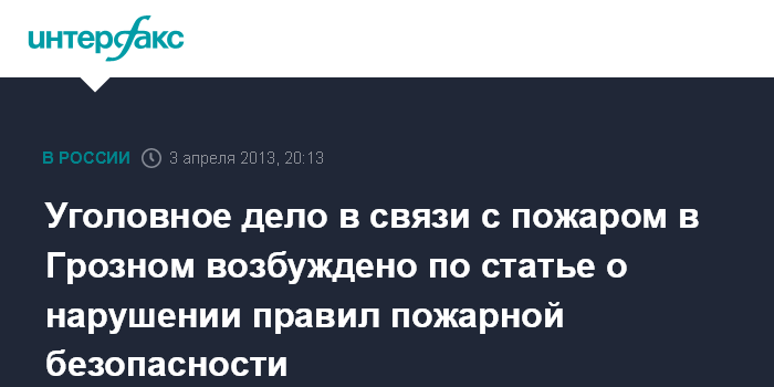 Уголовное дело в связи с пожаром в Грозном возбуждено по статье о нарушении правил пожарной безопасности