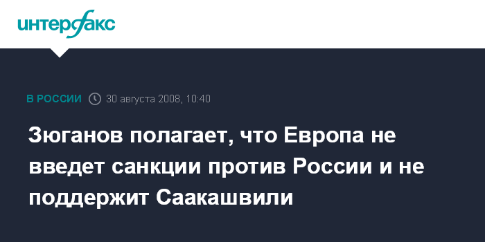 Зюганов полагает, что Европа не введет санкции против России и не поддержит Саакашвили