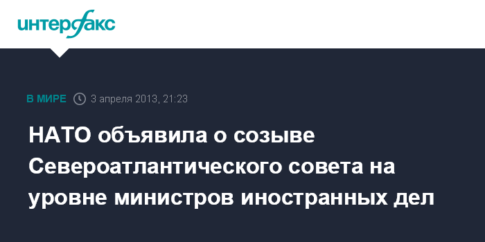 Брюссель. 3 марта. INTERFAX.RU - Штаб-квартира НАТО объявила в среду о проведении 23 апреля в Брюсселе заседания Североатлантического совета на уровне министров иностранных дел.