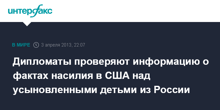 Дипломаты проверяют информацию о фактах насилия в США над усыновленными детьми из России
