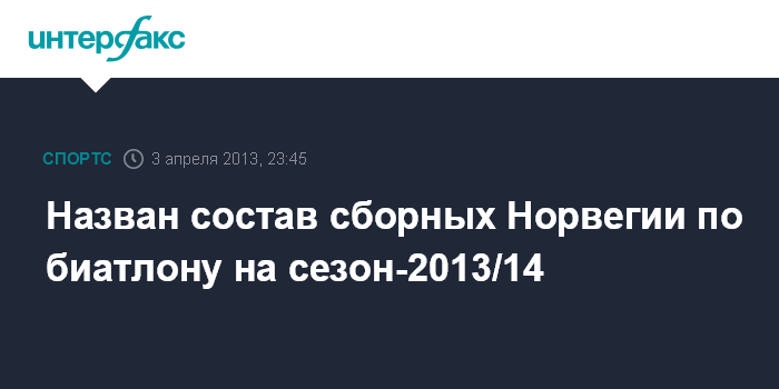 Москва. 3 апреля. INTERFAX.RU - Тренерский штаб сборных Норвегии по биатлону огласил составы команд на олимпийский сезон-2013/14.