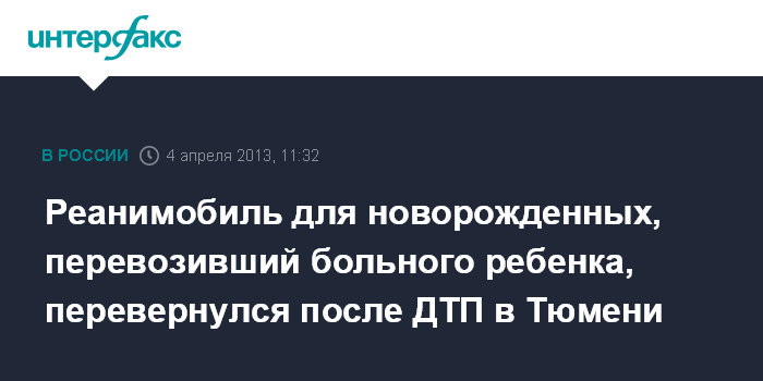 Реанимобиль для новорожденных, перевозивший больного ребенка, перевернулся после ДТП в Тюмени