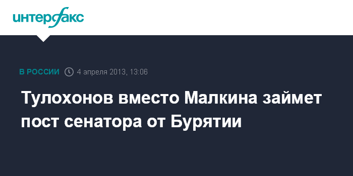 Тулохонов заменил Виталия Малкина, с которого Совет Федерации 27 марта досрочно снял полномочия сенатора от Бурятии.