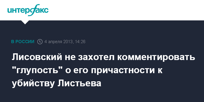 Москва. 4 апреля. INTERFAX.RU - Сенатор Сергей Лисовский назвал глупостью сообщения о том, что он якобы мог быть причастен к убийству в 1995 г. журналиста Владислава Листьева. "Послушайте, давайте так: глупость комментировать бесполезно. Так что звоните куда-то в другое место, хорошо?" - заявил Лисовский в интервью радиостанции "Эхо Москвы".