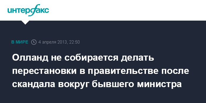 Париж. 4 апреля. INTERFAX.RU - Президент Франции Франсуа Олланд заявил, что скандал, разгоревшийся вокруг бывшего министра по вопросам бюджета Жерома Каюзака, не приведет к перестановкам в правительстве. "Нет никаких причин принимать какие бы то ни было решения по поводу состава правительства", - сказал он в четверг во время визита в Марокко.