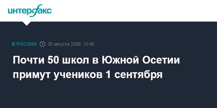 Москва. 30 августа. INTERFAX.RU – 49 школ в Южной Осетии будут готовы начать работу 1 сентября, доложил в субботу президенту РФ Дмитрию Медведеву министр образования и социального развития Андрей Фурсенко.