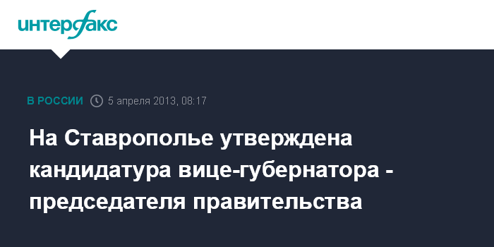 На Ставрополье утверждена кандидатура вице-губернатора - председателя правительства